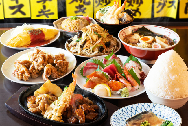 「安くて旨い!しかも呑める!オヤジもヤングもハマる昭和レトロな大衆食堂」がコンセプト。圧倒的な「メニューの品揃え」とお値段以上の「コストパフォーマンス」、日常使いできる「使い勝手の良さ」が特長です。メニューは、定食・丼もの、麺類から総菜・おつまみに至るまで、和洋中バラエティー豊かな116品を取りそろえています。
