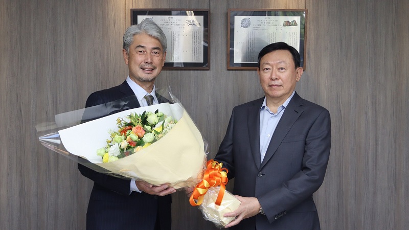 吉井理人監督も「まずは千葉ロッテマリーンズの指揮をとる機会をいただけたことへの感謝の気持ちをお伝えしました。私の方からは優勝をするために自分たちで考えて自分の責任で行動して勝ちにこだわったプレーができる選手を育てたいというお話をさせていただきました。精一杯、頑張っていきます」と重光会長からお祝いの花を受け取ると嬉しそうに話をした。