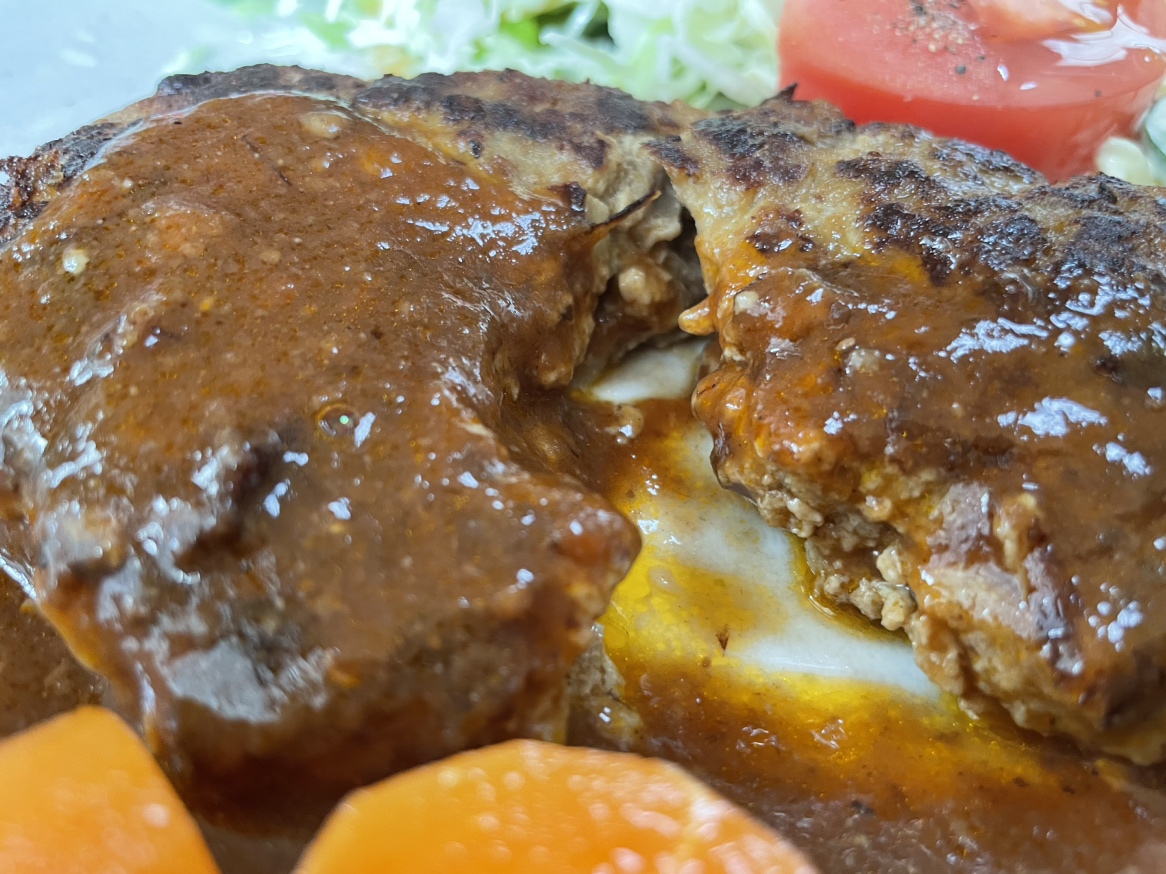 (我慢できずにご飯食べちゃってますが)早速ハンバーグを。