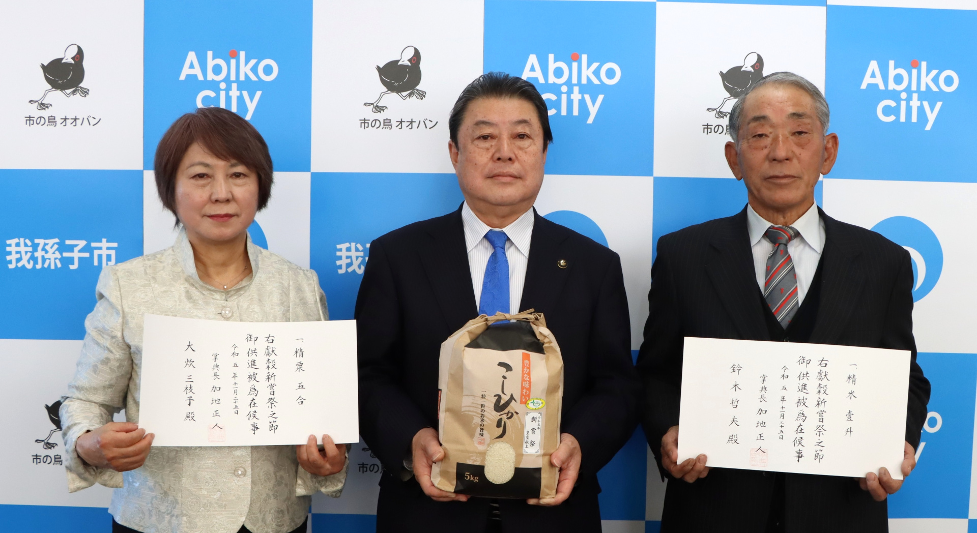 市内産の穀物が献上されるのは、1970年の市制施行後、初めてです。