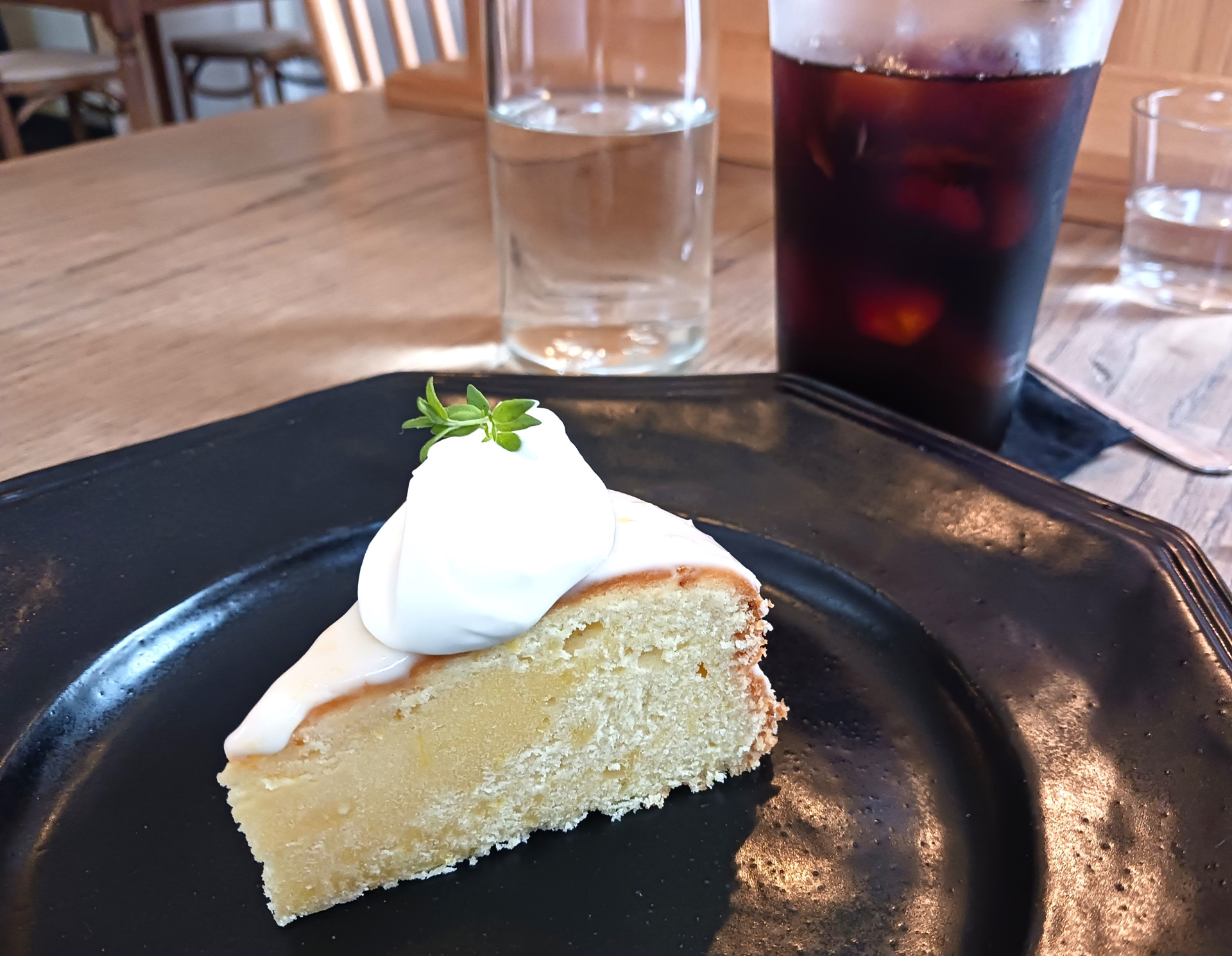 今回いただいた「レモンのサワークリームケーキ」は、国産レモンをたっぷり使ったケーキ。ずっしりと濃厚な雰囲気に、食後に選ぶケーキではなかったかと一瞬思いましたが、レモンの風味がさっぱりとして、さらにさわやかなヨーグルトクリームが添えられているので秒で完食。心配無用でした!