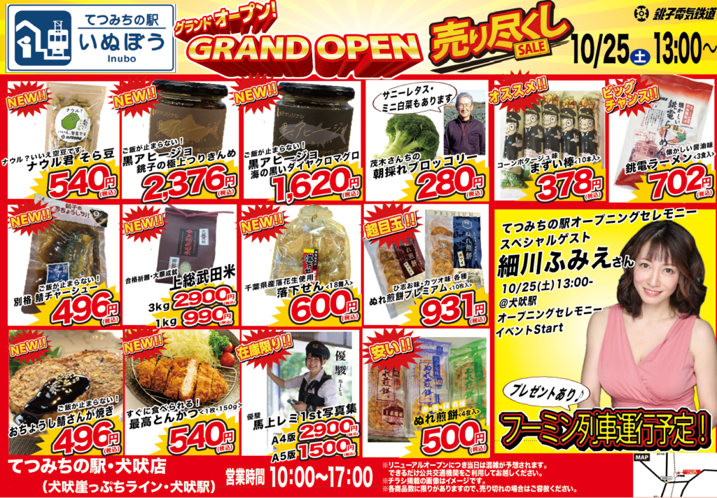 ※トップ写真:「てつみちの駅」のグランドオープンを伝える銚子電鉄のチラシ画像