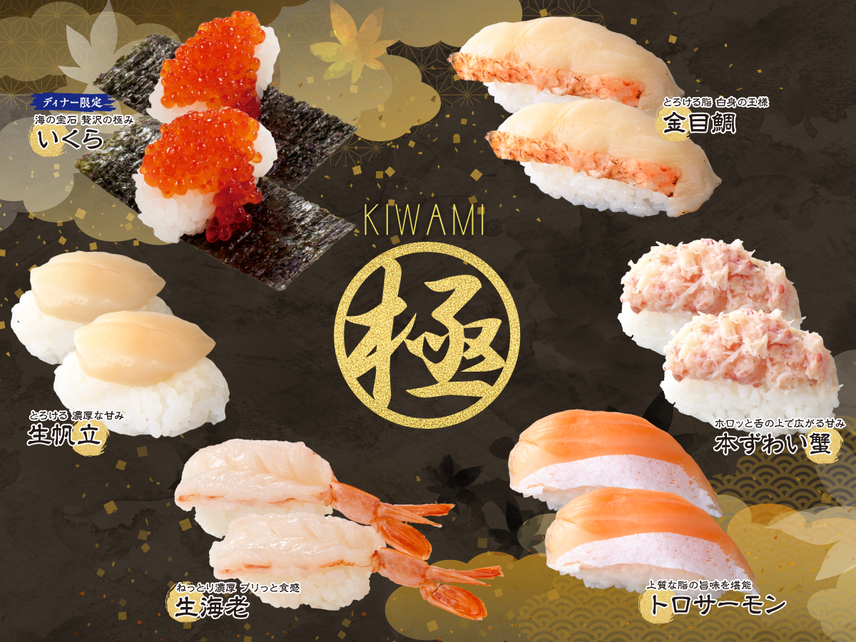 さらにディナータイムには、プチっと濃厚な「いくら」も登場。寿司好きにはたまらない贅沢なラインナップです。