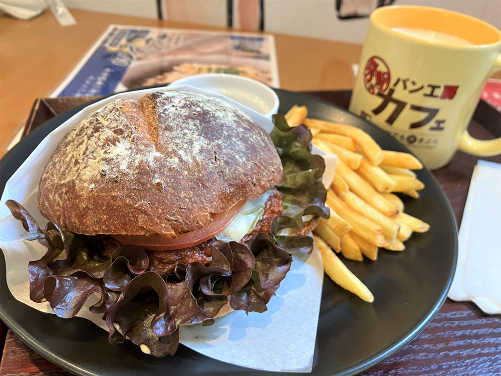 こちらのカフェは「石窯ホットドック」シリーズが人気なのですが、せっかくなので、より千葉っぽさ全開の「いわしバーグバーガー」を注文しました。