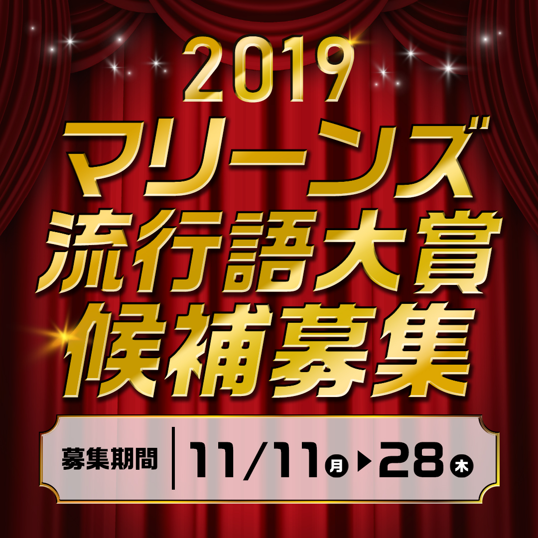 千葉ロッテマリーンズは「2019マリーンズ流行語大賞」を12月2日に発表するため候補となる言葉の募集を11月28日まで球団公式インスタグラム内にて開始した。ファンが寄せた候補の中から「2019マリーンズ流行語大賞選考委員会スタッフ」によってトップ10を選出し29日に発表。さらにその中から選考スタッフが大賞を決め12月2日に年間大賞を発表する。