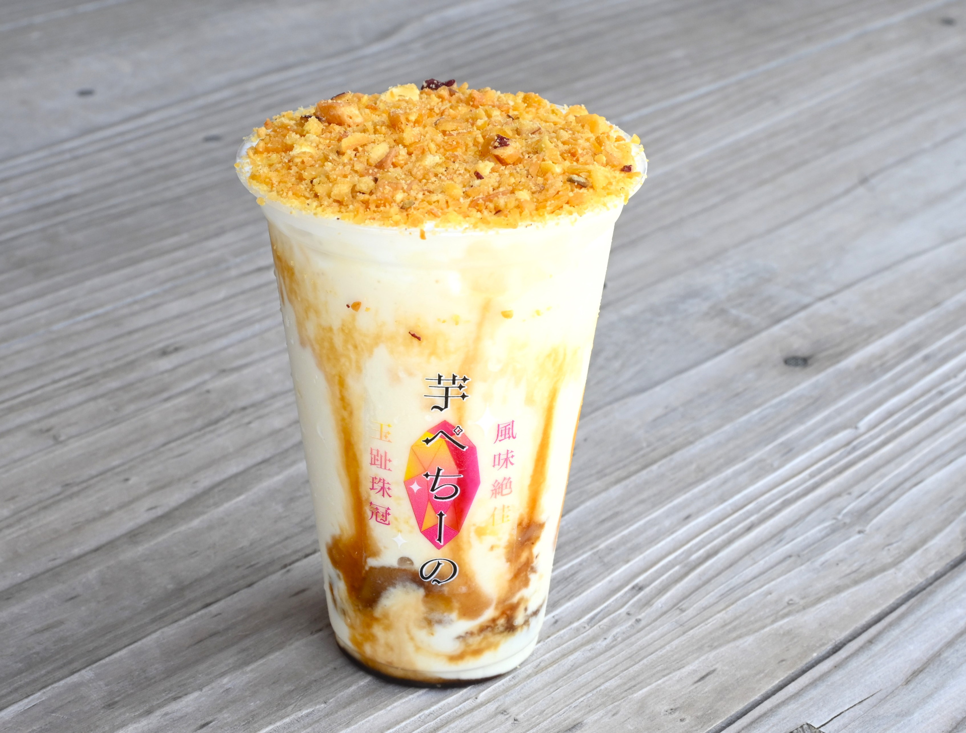 八街市産の落花生や、芝山農園さんオリジナルのクラッシュ芋けんぴがトッピングされていて、香ばしさとザクザクとした食感が加わり、味と食感のコントラストが絶妙で飲み飽きない。
