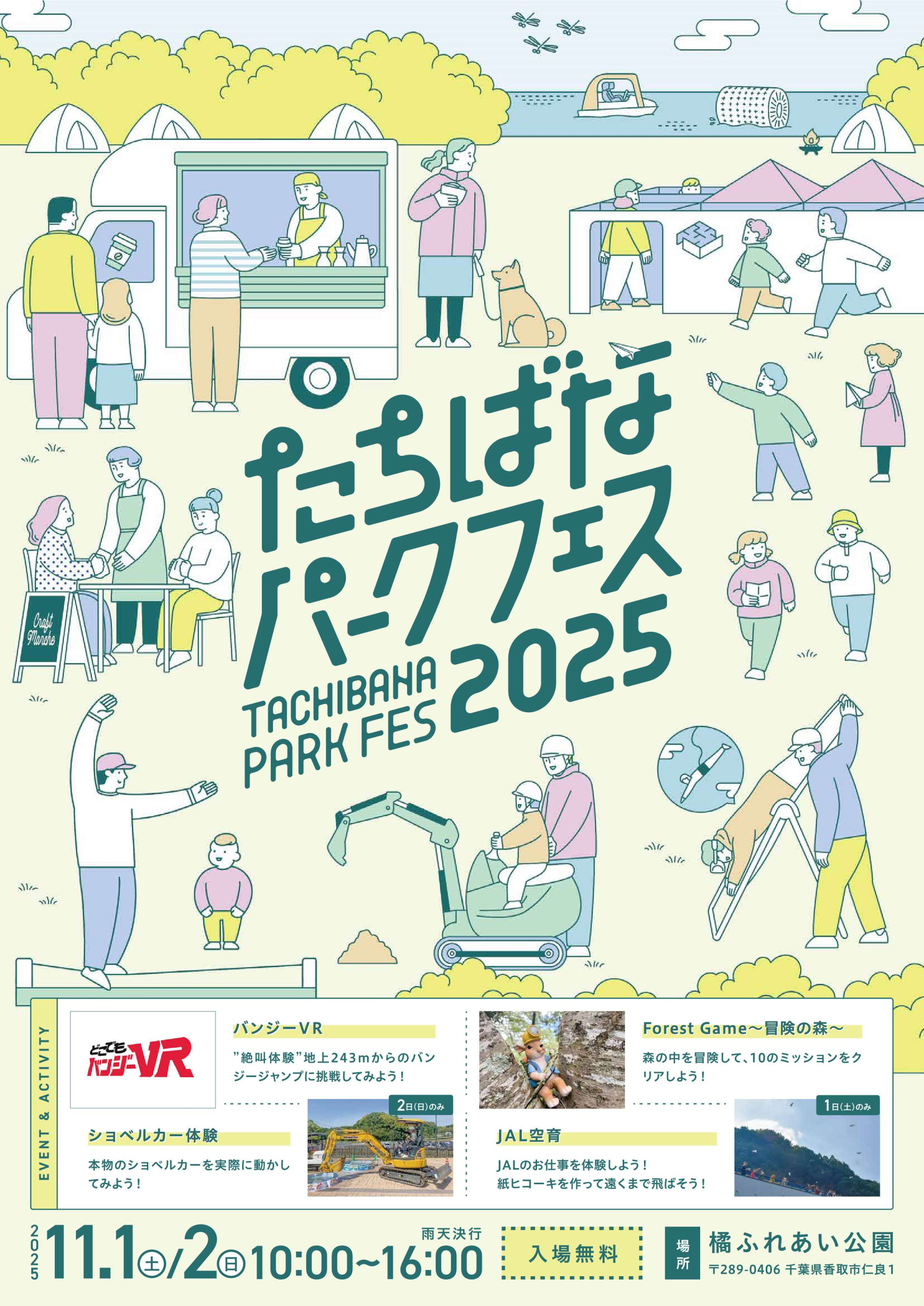 11/1(土)・11/2(日)に、橘ふれあい公園(香取市)で「たちばなパークフェス2025」が開催されるというお知らせが届きました。ワクワクするイベントが盛りだくさん!さっそくご紹介します。